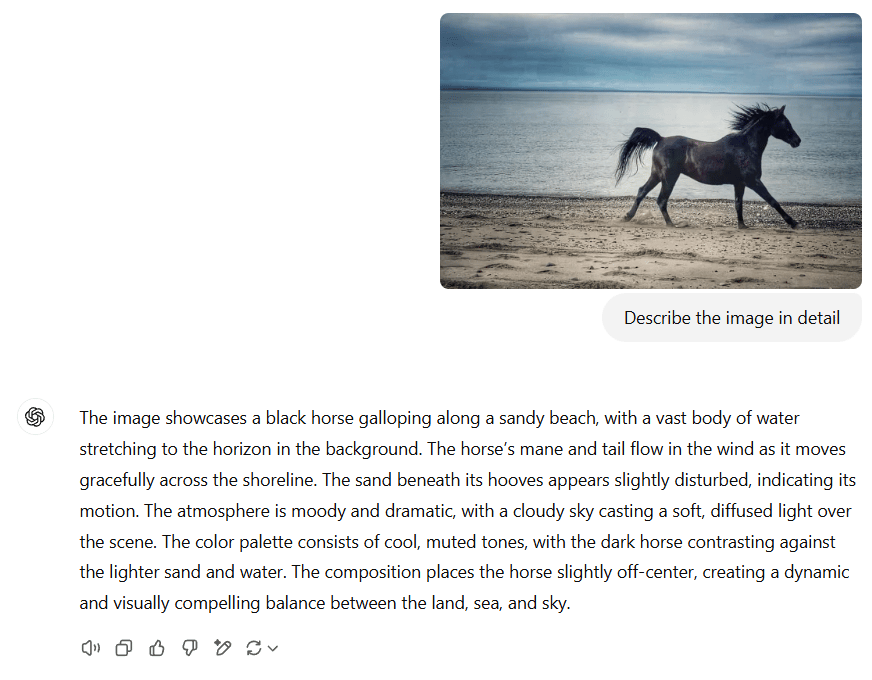 Step 2: Upload the image to AI and ask AI (I use ChatGPT) to describe it in detail.
